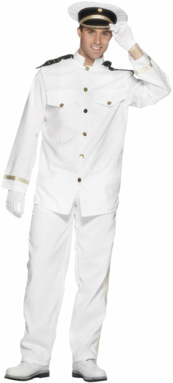 Everyone loves a man in his dress whites! The impressive Captain costume includes a white jacket with gold buttons & epaulet accents, white pants, a pair of white gloves, and a matching captain hat. A must-have uniform when setting sail on the high seas!