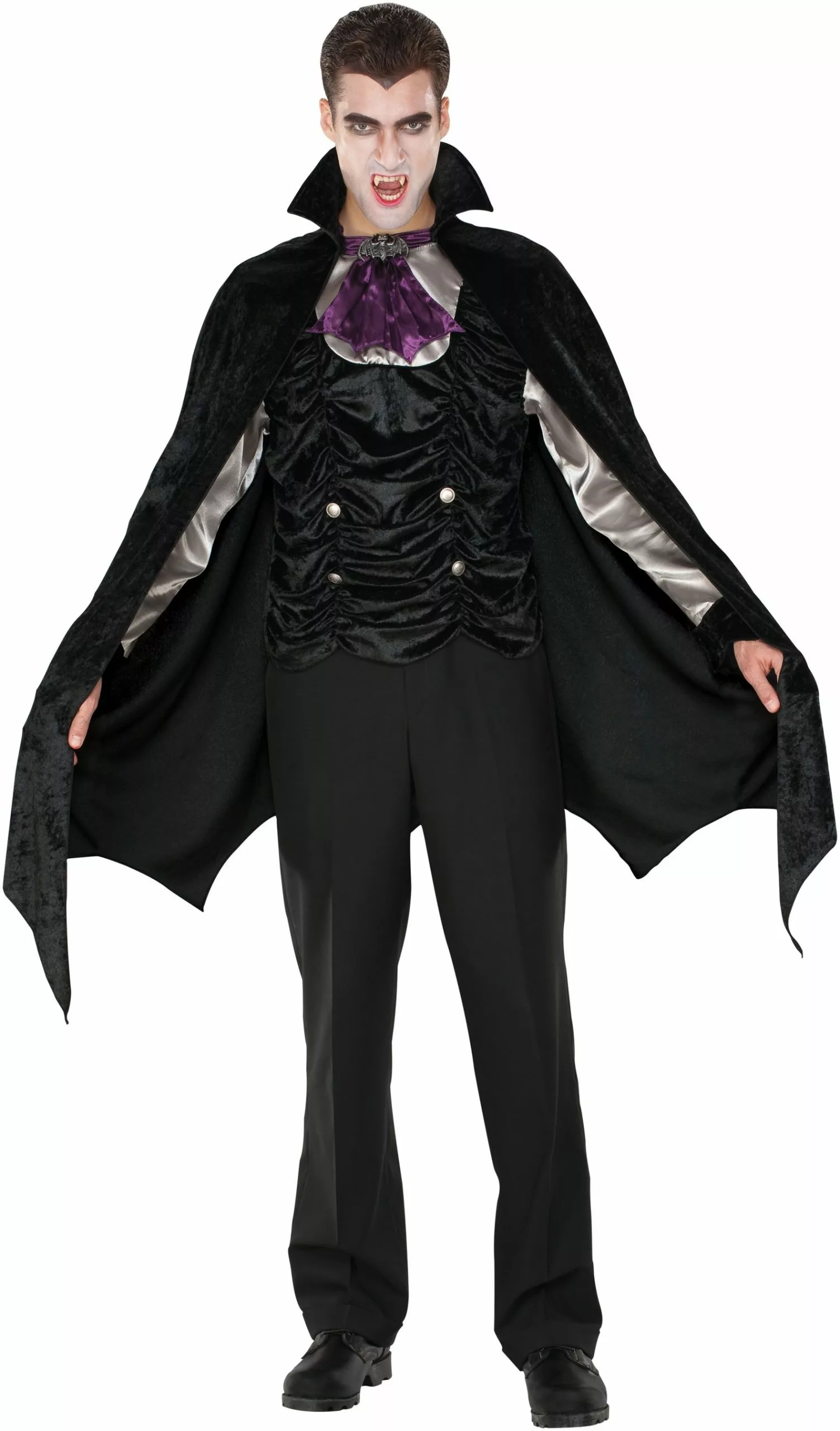 This dashing dark lord is ready for one thrilling fright night! The Dark Lord Dracon Adult Costume is a must-have for this year’s Halloween bash. Includes a jagged-hem, velvety cape, shirt with attached ruched vest, cravat with attached bat accent and cuffs.