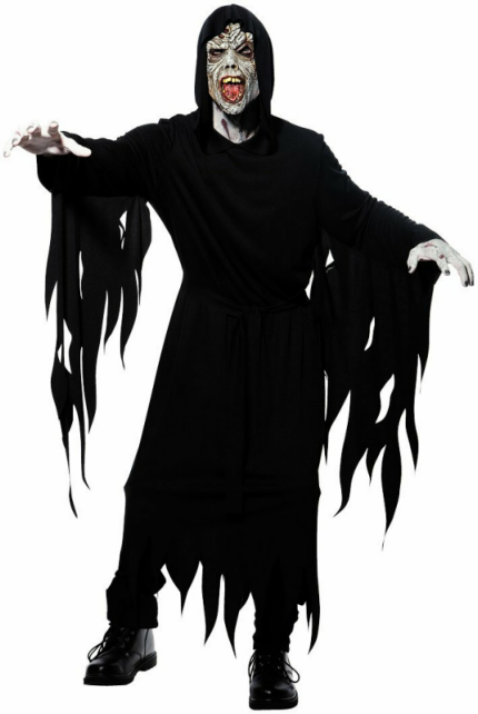 Cause great fear wherever you go this Halloween! Harvest souls in this menacing ensemble that includes a black tattered long sleeve hooded robe and a frightening ghoulish mask. Guaranteed to send shivers down the spines of all those you pass!