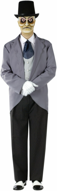 This puppet undertaker’s no dummy. You’ll be the most striking fright at this year’s costume ball in this spooky costume. Includes an old-fashioned mourning coat, pinstriped pants, vest front, ascot tie, gloves, top hat and ventriloquist’s dummy-style mask. I wouldn’t mess with this mortician if I were you!