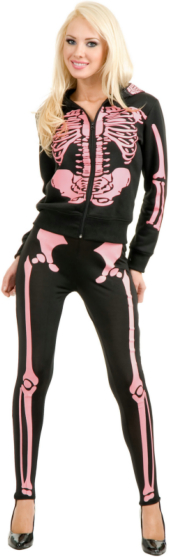 Ladies Skeleton Hoodie Sweatshirt (Pink) Adult
