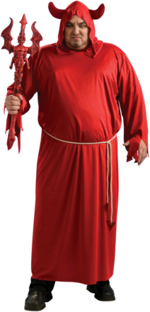 Get ready to get diabolical in this devious devil disguise which includes: A red robe with jagged hem on the sleeves and a hooded headpiece featuring attached plush devil horns.