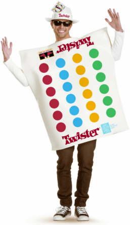 They’ll have their hands all over you while you’re wearing the Twister Deluxe Costume which includes: A Foam tunic featuring Twister game board print and a matching hat with attached miniature spinner.