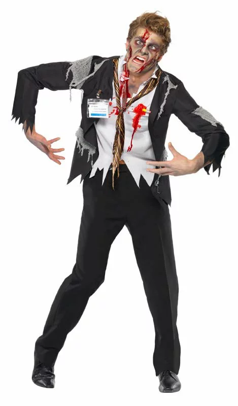 TPS reports, endless board meetings and weekend overtime. The life of a cubicle dweller can be daunting.or HAUNTING. The Worked to Death – Office Zombie (Male) Adult Costume includes a jacket with attached shirt, tie and name badge. You’ll feel undead in no time!